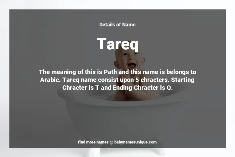 The name Tareq is chosen by those who are willing to find Unique Boy Baby Names. The meaning of this is Path and this name is belongs to Arabic Origin. Baby Name Tareq consist upon 5 chracters. Starting alphabet is T and ending alphabet is Q. This name is used primarily by parents who are considering unique baby names for Boy. The Zodiac Sign suitbale for this name are;