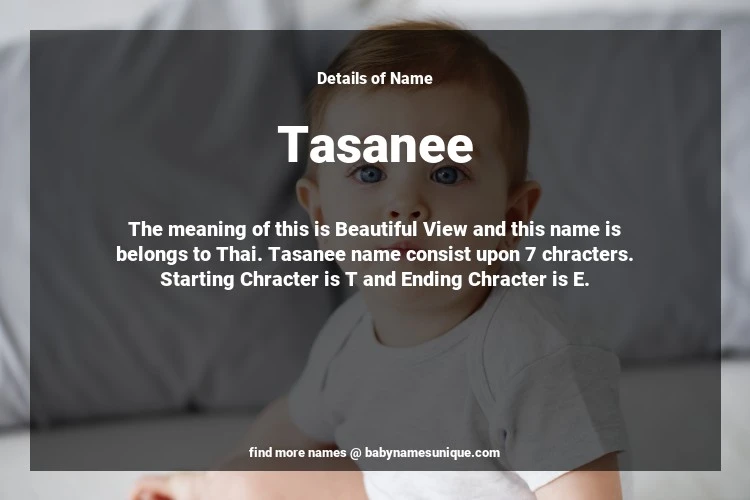 The name Tasanee is chosen by those who are willing to find Unique Transgenders Baby Names. The meaning of this is Beautiful View and this name is belongs to Thai Origin. Baby Name Tasanee consist upon 7 chracters. Starting alphabet is T and ending alphabet is E. This name is used primarily by parents who are considering unique baby names for Transgenders. The Zodiac Sign suitbale for this name are;