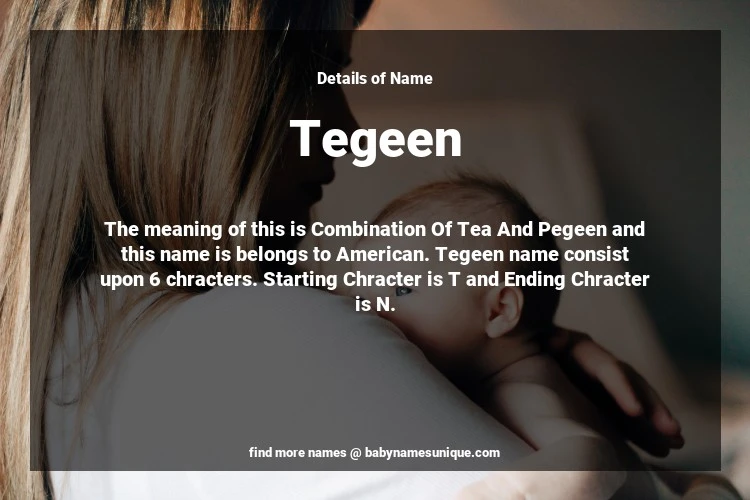 The name Tegeen is chosen by those who are willing to find Unique Transgenders Baby Names. The meaning of this is Combination Of Tea And Pegeen and this name is belongs to American Origin. Baby Name Tegeen consist upon 6 chracters. Starting alphabet is T and ending alphabet is N. This name is used primarily by parents who are considering unique baby names for Transgenders. The Zodiac Sign suitbale for this name are;