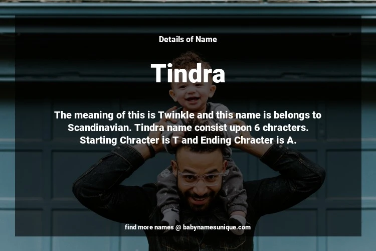 The name Tindra is chosen by those who are willing to find Unique Transgenders Baby Names. The meaning of this is Twinkle and this name is belongs to Scandinavian Origin. Baby Name Tindra consist upon 6 chracters. Starting alphabet is T and ending alphabet is A. This name is used primarily by parents who are considering unique baby names for Transgenders. The Zodiac Sign suitbale for this name are;