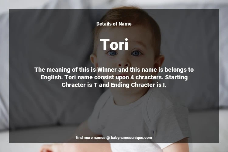The name Tori is chosen by those who are willing to find Unique Transgenders Baby Names. The meaning of this is Winner and this name is belongs to English Origin. Baby Name Tori consist upon 4 chracters. Starting alphabet is T and ending alphabet is I. This name is used primarily by parents who are considering unique baby names for Transgenders. The Zodiac Sign suitbale for this name are;