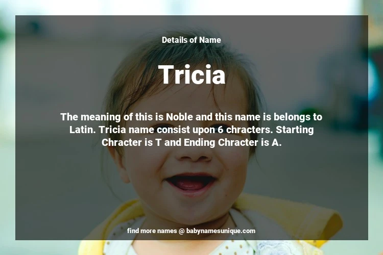 The name Tricia is chosen by those who are willing to find Unique Transgenders Baby Names. The meaning of this is Noble and this name is belongs to Latin Origin. Baby Name Tricia consist upon 6 chracters. Starting alphabet is T and ending alphabet is A. This name is used primarily by parents who are considering unique baby names for Transgenders. The Zodiac Sign suitbale for this name are;