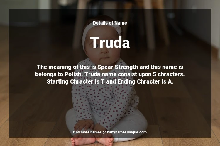 The name Truda is chosen by those who are willing to find Unique Transgenders Baby Names. The meaning of this is Spear Strength and this name is belongs to Polish Origin. Baby Name Truda consist upon 5 chracters. Starting alphabet is T and ending alphabet is A. This name is used primarily by parents who are considering unique baby names for Transgenders. The Zodiac Sign suitbale for this name are;