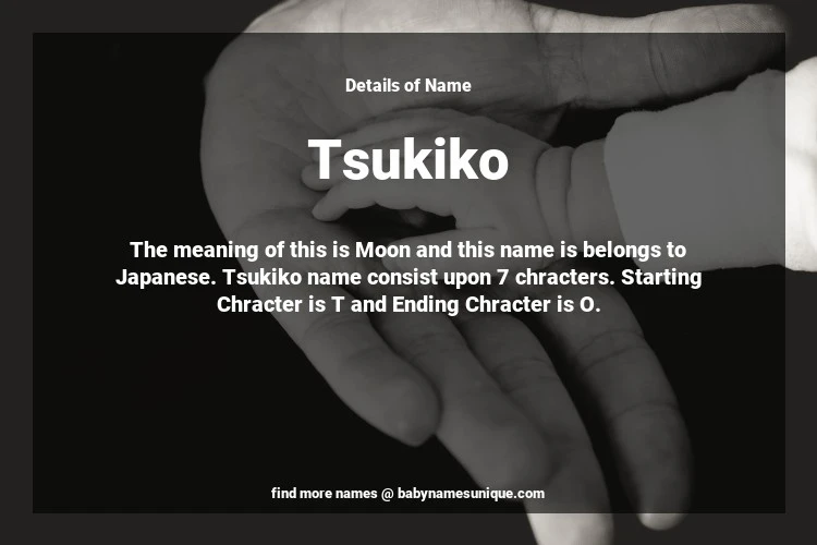 The name Tsukiko is chosen by those who are willing to find Unique Transgenders Baby Names. The meaning of this is Moon and this name is belongs to Japanese Origin. Baby Name Tsukiko consist upon 7 chracters. Starting alphabet is T and ending alphabet is O. This name is used primarily by parents who are considering unique baby names for Transgenders. The Zodiac Sign suitbale for this name are;