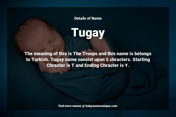 The name Tugay is chosen by those who are willing to find Unique Boy Baby Names. The meaning of this is The Troops and this name is belongs to Turkish Origin. Baby Name Tugay consist upon 5 chracters. Starting alphabet is T and ending alphabet is Y. This name is used primarily by parents who are considering unique baby names for Boy. The Zodiac Sign suitbale for this name are;