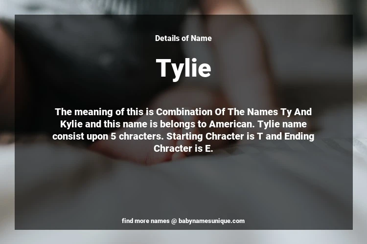 The name Tylie is chosen by those who are willing to find Unique Transgenders Baby Names. The meaning of this is Combination Of The Names Ty And Kylie and this name is belongs to American Origin. Baby Name Tylie consist upon 5 chracters. Starting alphabet is T and ending alphabet is E. This name is used primarily by parents who are considering unique baby names for Transgenders. The Zodiac Sign suitbale for this name are;