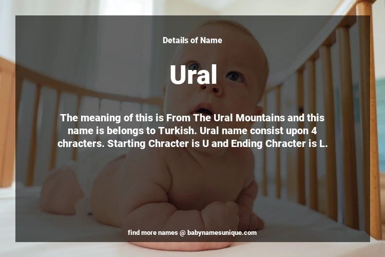 The name Ural is chosen by those who are willing to find Unique Boy Baby Names. The meaning of this is From The Ural Mountains and this name is belongs to Turkish Origin. Baby Name Ural consist upon 4 chracters. Starting alphabet is U and ending alphabet is L. This name is used primarily by parents who are considering unique baby names for Boy. The Zodiac Sign suitbale for this name are;