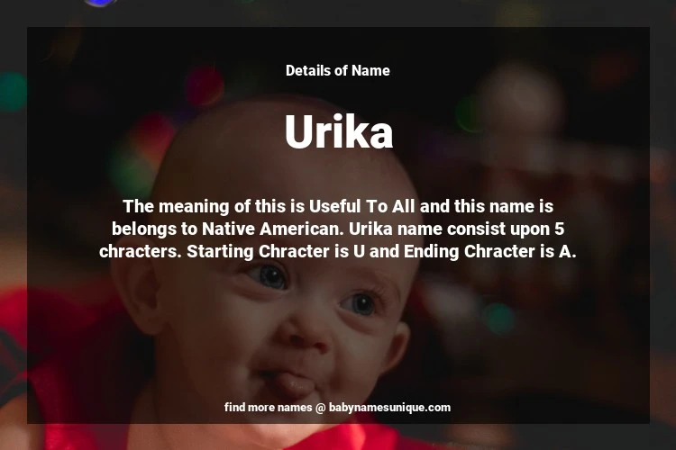 The name Urika is chosen by those who are willing to find Unique Transgenders Baby Names. The meaning of this is Useful To All and this name is belongs to Native American Origin. Baby Name Urika consist upon 5 chracters. Starting alphabet is U and ending alphabet is A. This name is used primarily by parents who are considering unique baby names for Transgenders. The Zodiac Sign suitbale for this name are;