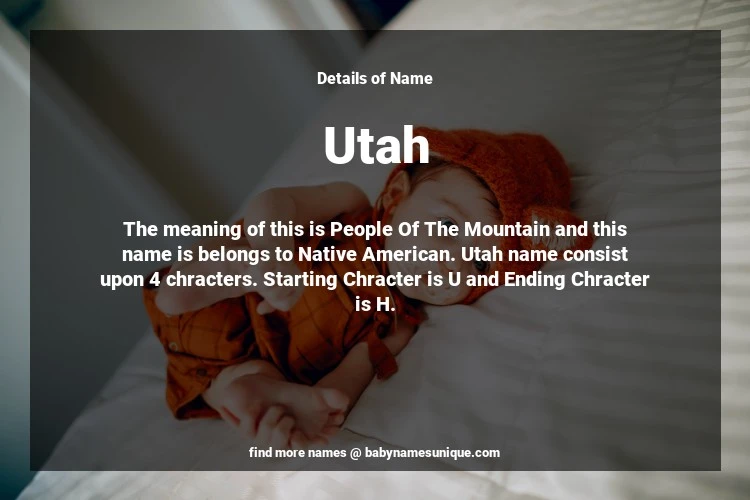 The name Utah is chosen by those who are willing to find Unique Transgenders Baby Names. The meaning of this is People Of The Mountain and this name is belongs to Native American Origin. Baby Name Utah consist upon 4 chracters. Starting alphabet is U and ending alphabet is H. This name is used primarily by parents who are considering unique baby names for Transgenders. The Zodiac Sign suitbale for this name are;