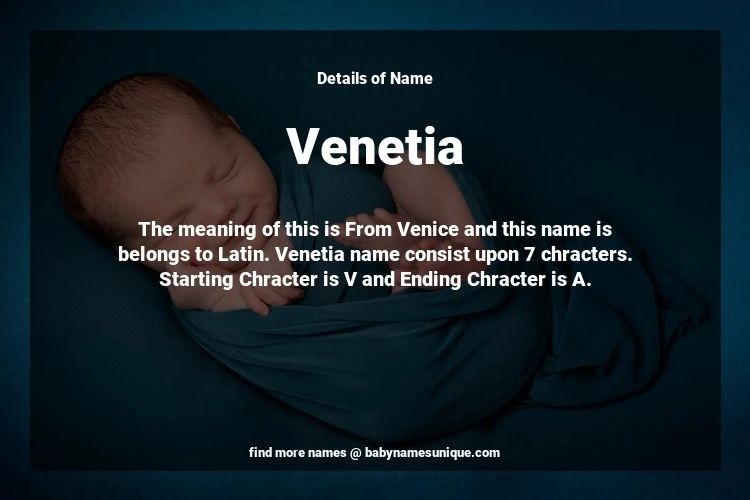 The name Venetia is chosen by those who are willing to find Unique Transgenders Baby Names. The meaning of this is From Venice and this name is belongs to Latin Origin. Baby Name Venetia consist upon 7 chracters. Starting alphabet is V and ending alphabet is A. This name is used primarily by parents who are considering unique baby names for Transgenders. The Zodiac Sign suitbale for this name are;