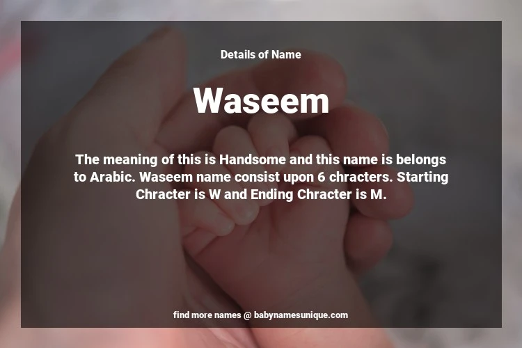 The name Waseem is chosen by those who are willing to find Unique Boy Baby Names. The meaning of this is Handsome and this name is belongs to Arabic Origin. Baby Name Waseem consist upon 6 chracters. Starting alphabet is W and ending alphabet is M. This name is used primarily by parents who are considering unique baby names for Boy. The Zodiac Sign suitbale for this name are;
