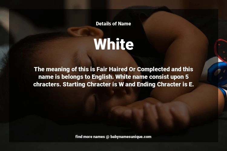 The name White is chosen by those who are willing to find Unique Transgenders Baby Names. The meaning of this is Fair Haired Or Complected and this name is belongs to English Origin. Baby Name White consist upon 5 chracters. Starting alphabet is W and ending alphabet is E. This name is used primarily by parents who are considering unique baby names for Transgenders. The Zodiac Sign suitbale for this name are;