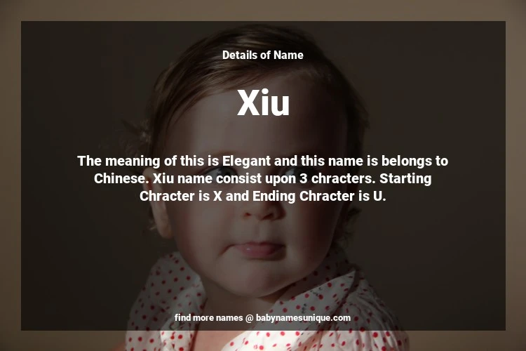The name Xiu is chosen by those who are willing to find Unique Transgenders Baby Names. The meaning of this is Elegant and this name is belongs to Chinese Origin. Baby Name Xiu consist upon 3 chracters. Starting alphabet is X and ending alphabet is U. This name is used primarily by parents who are considering unique baby names for Transgenders. The Zodiac Sign suitbale for this name are;